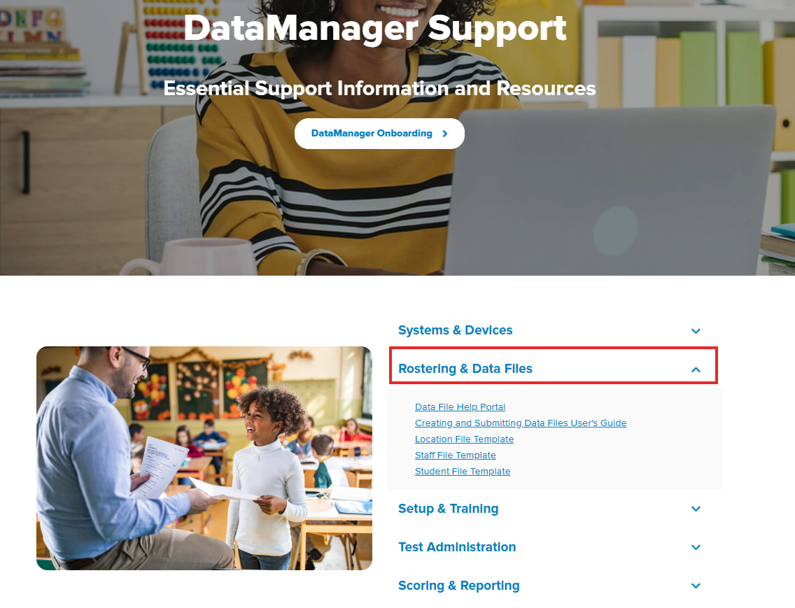 The DataManager Essential Support Information and Resources page opens. - Click Rostering & Data Files