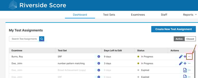 - After 30 days from the start of the first administration, scores can no longer be edited. Test assignments that are closed may still be merged as long as they are within the 30-day window.
