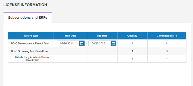 Account Holders in Riverside Score can monitor how their organization's BDI-3 Electronic Record Form (ERF) licenses are being used. This helps ensure accurate tracking of scoring activity across staff and devices.
